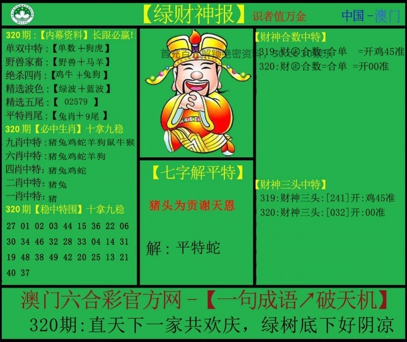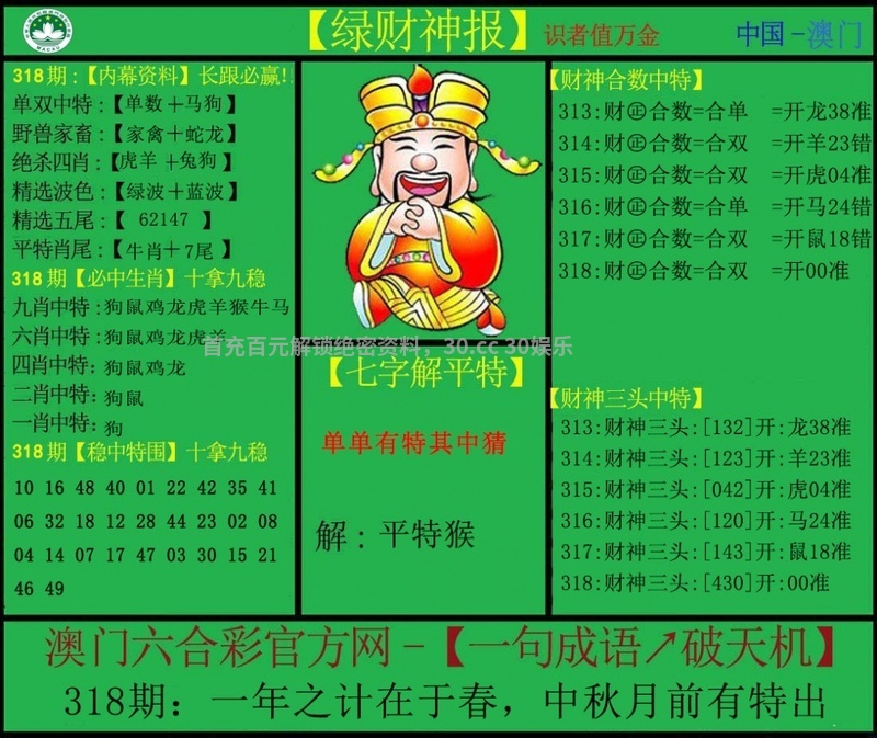 322期:初沫柒柒【平特★二肖】恭喜发财